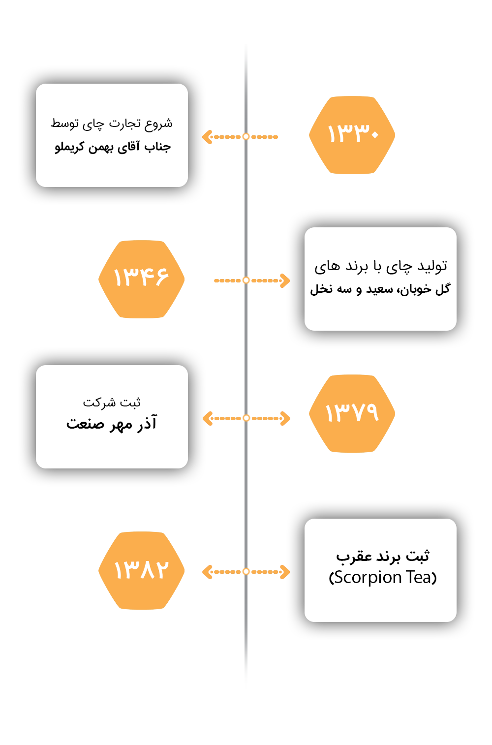روحیه چالش طلب در بازار باعث شد در دهه هشتاد،برند عقرب (Scorpion Tea) را به نام خود ثبت نموده و سخت کوشی در هر شرایط را سرلوحه خود قرار دهیم.
